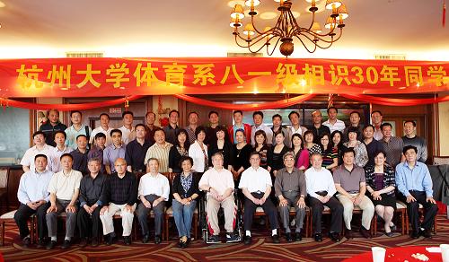 五月的杭州,春意盎然,天清气朗,原杭州大学体育系81级毕业生于5月7日-8日,在浙江嘉海大酒店举行了相识相知30周年同学会。这次同学会共有43位同学到会,同时还邀请了原杭州大学体育系年级主任王金生、黎禾,原班主任于可红、陈允浩等13位老师参加。