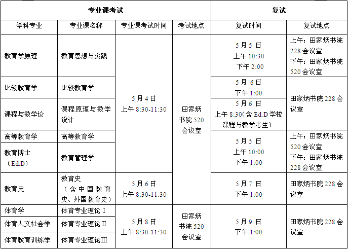 5月5日-5月20日:教育学学科、体育学学科考生分学科专业完成复试工作。