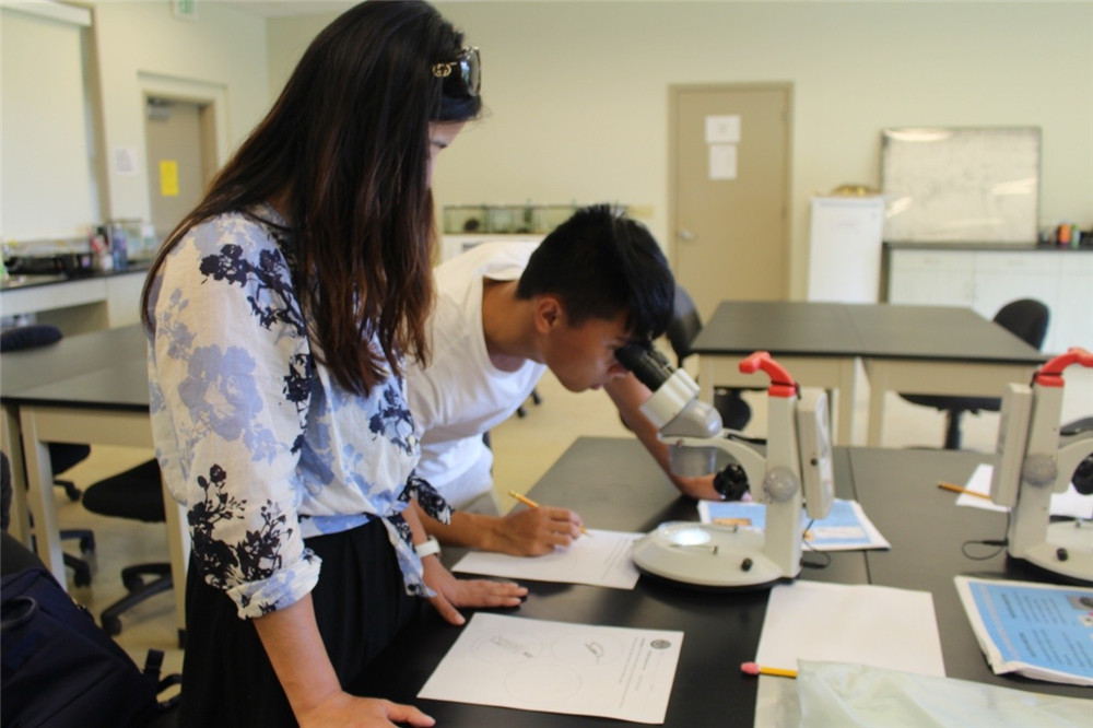 为进一步加深对海洋生物与自然和谐共生的认识,同学们考察了夏威夷大学马诺阿分校位于Coconut海岛上的海洋生物研究中心基地,在教授们详细介绍海洋浮游生物的种类和生存环境后,同学们亲自动手完成一些浮游生物分类和通过显微镜观察浮游生物标本,体会到“从做中学”的乐趣和意义。更让夏令营同学们敬佩的是,研究中心的教授们对海洋生物的情感和敬业精神。启发同学们对干事创业、尊重生物、热爱自然的心灵感悟。