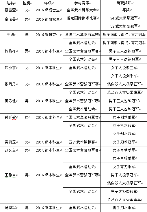 武术队赢得女子24式太极拳和32式太极剑两项冠军。