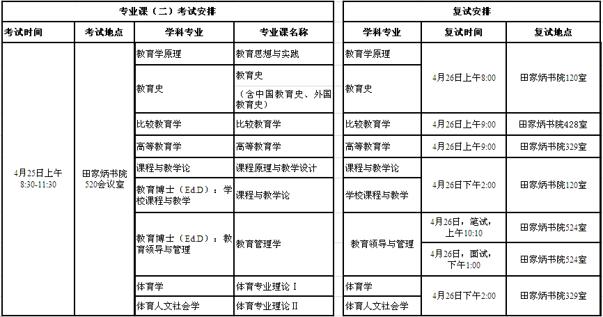 4月25日-4月26日:教育学学科、体育学学科考生分学科专业完成复试工作。