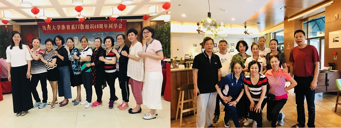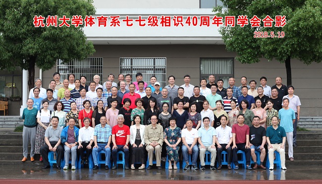 5月19至20日,体育学系77级相识40周年同学会在文化历史古城绍兴举行,共有5位老师和75位校友参加。19日晚,师生相聚在浙江越秀外国语学院餐厅,李寅生、宋军生两位校友主持晚宴,华民致欢迎词,教师代表谢文培以及学生代表李田里、李建秋、何献敏先后发言。现场气氛热烈,情意浓浓,大家共同回眸青春燃烧的岁月与故事。晚宴上,校友们纷纷进行才艺展示,尤其是当年体操运动员依旧优美的舞姿,赢得在座师生的阵阵掌声。