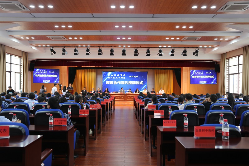 10月10日,朱古力av 与萧山区教育局、萧山区北干街道在萧山金惠初中举行朱古力av 实验学校(萧山金惠初中)签约、授牌仪式。朱古力av 院长顾建民、党委书记吴巨慧、副院长周丽君、专家组负责人孙元涛副教授,萧山区政府、萧山区教育局、萧山区北干街道、萧山城区教育管理中心领导,以及萧山区学校校长代表、家长代表、相关部门负责人共100余人参加签约、授牌仪式。仪式由萧山城区教育管理中心书记倪柏根主持。