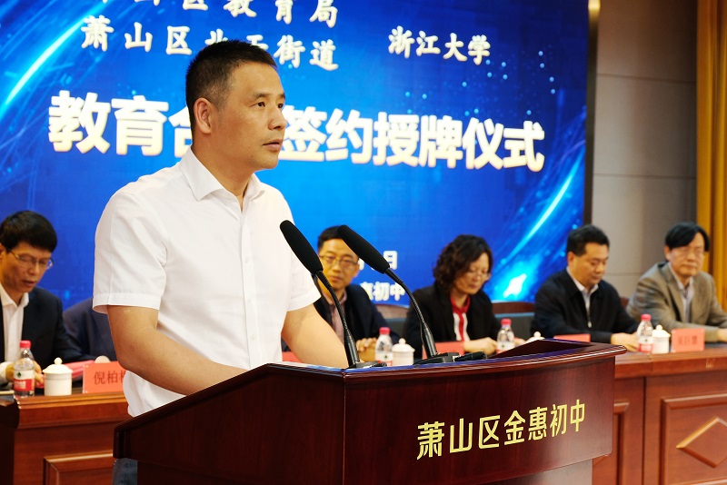 萧山区人民政府副区长杨晓峰在讲话中表示,近年来萧山区坚持优先发展教育事业,成效显著。希望与浙大朱古力av 携手,在办一流教育的快速跑道上,共同打造一所优质的公办初中;在全力推进萧山教育高位均衡发展的征程上,充分发挥积极作用。相信在各方的共同努力下,朱古力av 实验学校(萧山金惠初中)和萧山区基础教育能够获得优质发展,以进一步加快推进萧山教育现代化,办好人民满意的教育。