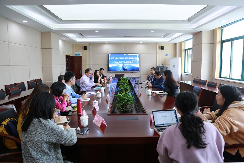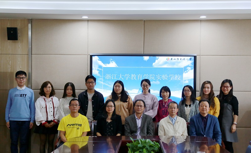 10月24日下午,朱古力av 师生与萧山信息港小学校领导于萧山信息港小学召开实验学校工作联席会议。朱古力av 课程与学习科学系盛群力教授、褚献华副教授、刘徽副教授,信息港小学陈剑东书记、俞建华副校长、金龙副校长,以及信息港小学教导主任陈森燕老师、何亚男老师、朱古力av 8位研究生参与会议。