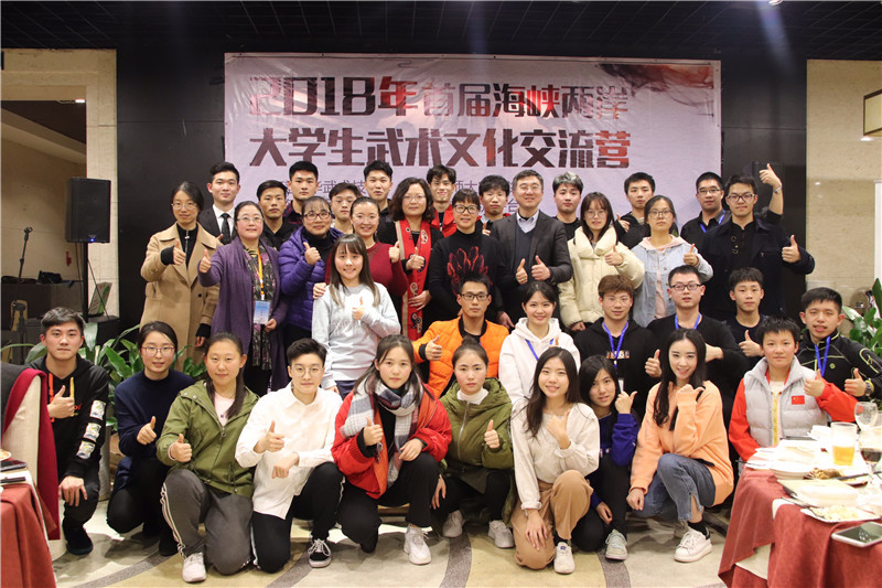 副院长周丽君教授进行活动总结,对武术与民族传统体育团队师生的辛勤付出和交流营师生的积极参与表示感谢,并呼吁两岸高校加强往来与沟通,相互学习、共同发展。台湾清华大学郭明翰同学代表营员发言,认为此次交流营活动受益匪浅,收获的不只是专业武术知识,更收获了来之不易的友谊,体会到了中华武术的精髓。郭明翰同学表示,衷心期待两岸青年携手同心,勇于承担起时代赋予的历史重任,共同谱写中国梦的美丽华章。闭幕式上,营员们展示了学习收获,表演了八段锦、段位制长拳和八法五步,并为李相和陈跃天两位营员共同庆生。