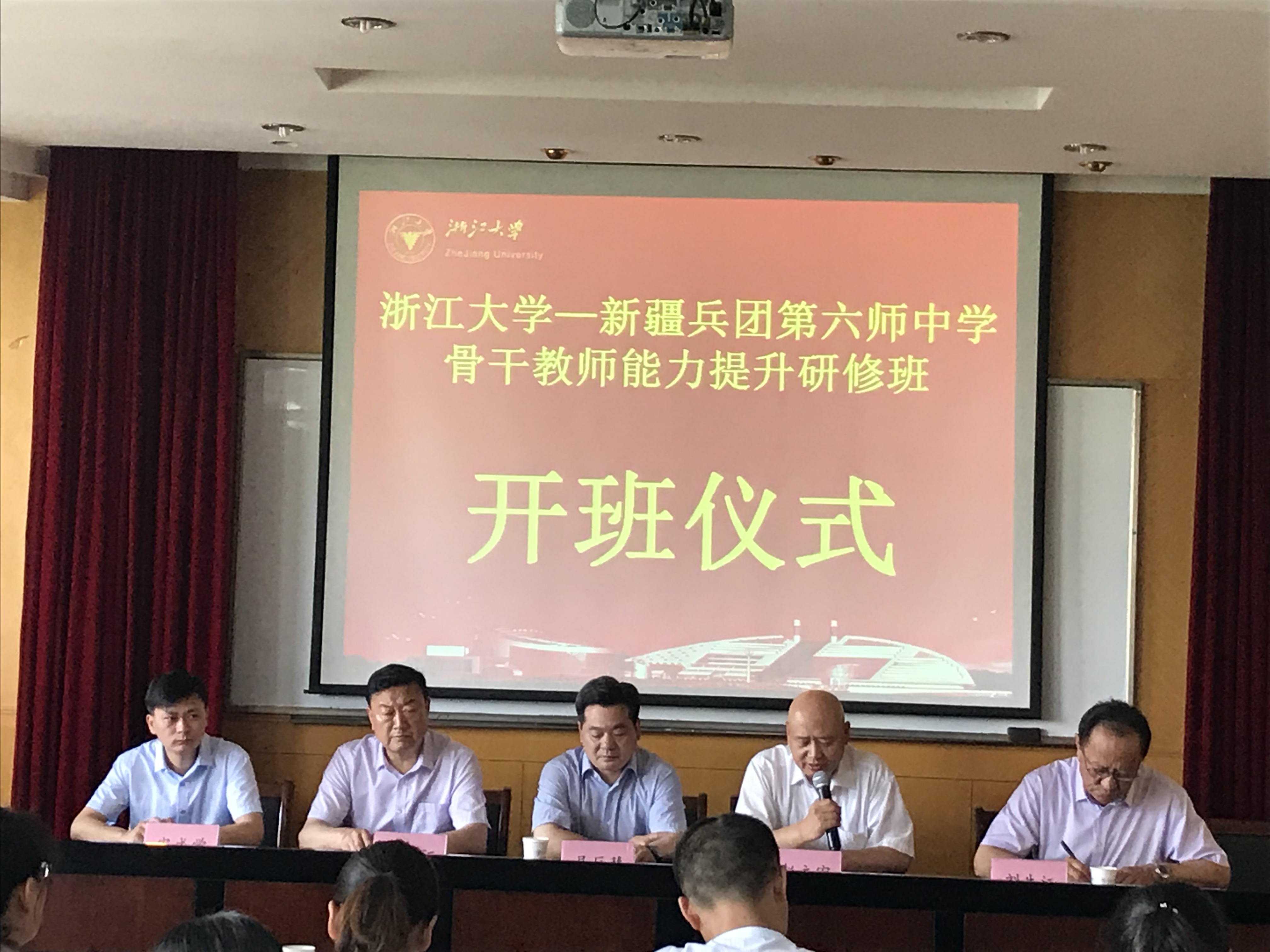 2019年6月11日上午,朱古力av ----新疆兵团第六师中学骨干教师能力提升研修班在朱古力av 西溪校区田家炳书院520教室开班。六师教育局副局长赵立宏、五家渠高级中学校长刘生江、五家渠一中校党委书记李建江、朱古力av 党委书记吴巨慧出席了开班仪式。开班仪式由朱古力av 本次培训班的班主任潘月萍主持,六师的60名骨干教师参加了此次培训学习。