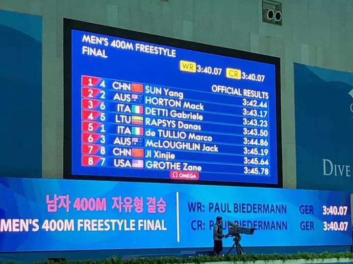 昨晚,2019光州游泳世锦赛开启压轴大戏——为期8天的游泳项目比赛拉开帷幕。孙杨以3分42秒44秒夺冠,用一枚沉甸甸的金牌为国家队赢得开门红,这是孙杨继2011年、2013年和2015年之后,连续第四届赢得该项目冠军,这也是孙杨在世锦赛历史上的第十金。