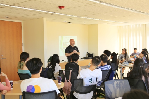 交流营一行抵达UMH后,受到了马诺阿分校朱古力av 和研究生院师生的热烈欢迎和热情接待。项目负责人Danis为交流营同学介绍了日程安排,并带领大家参观了UMH校园。