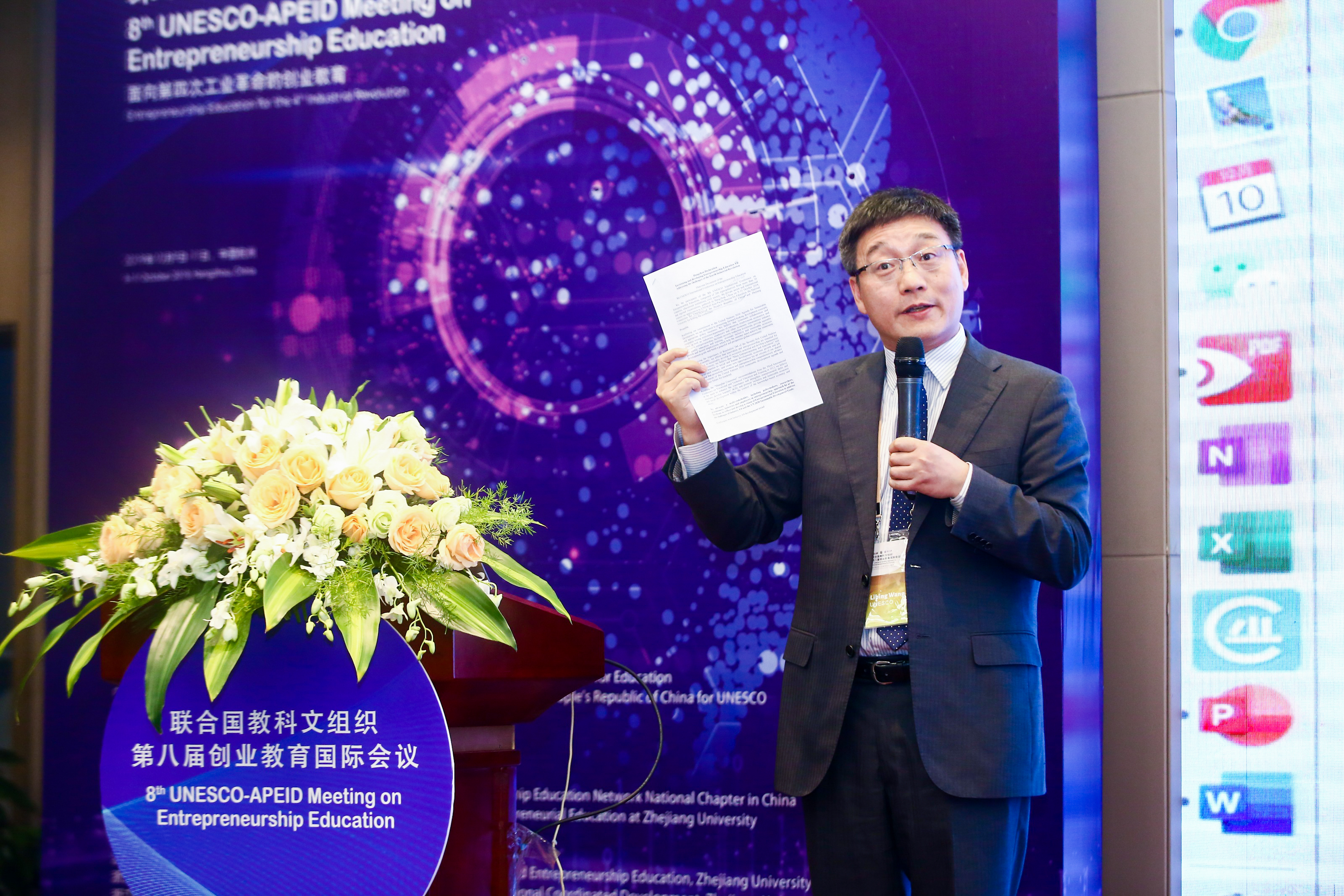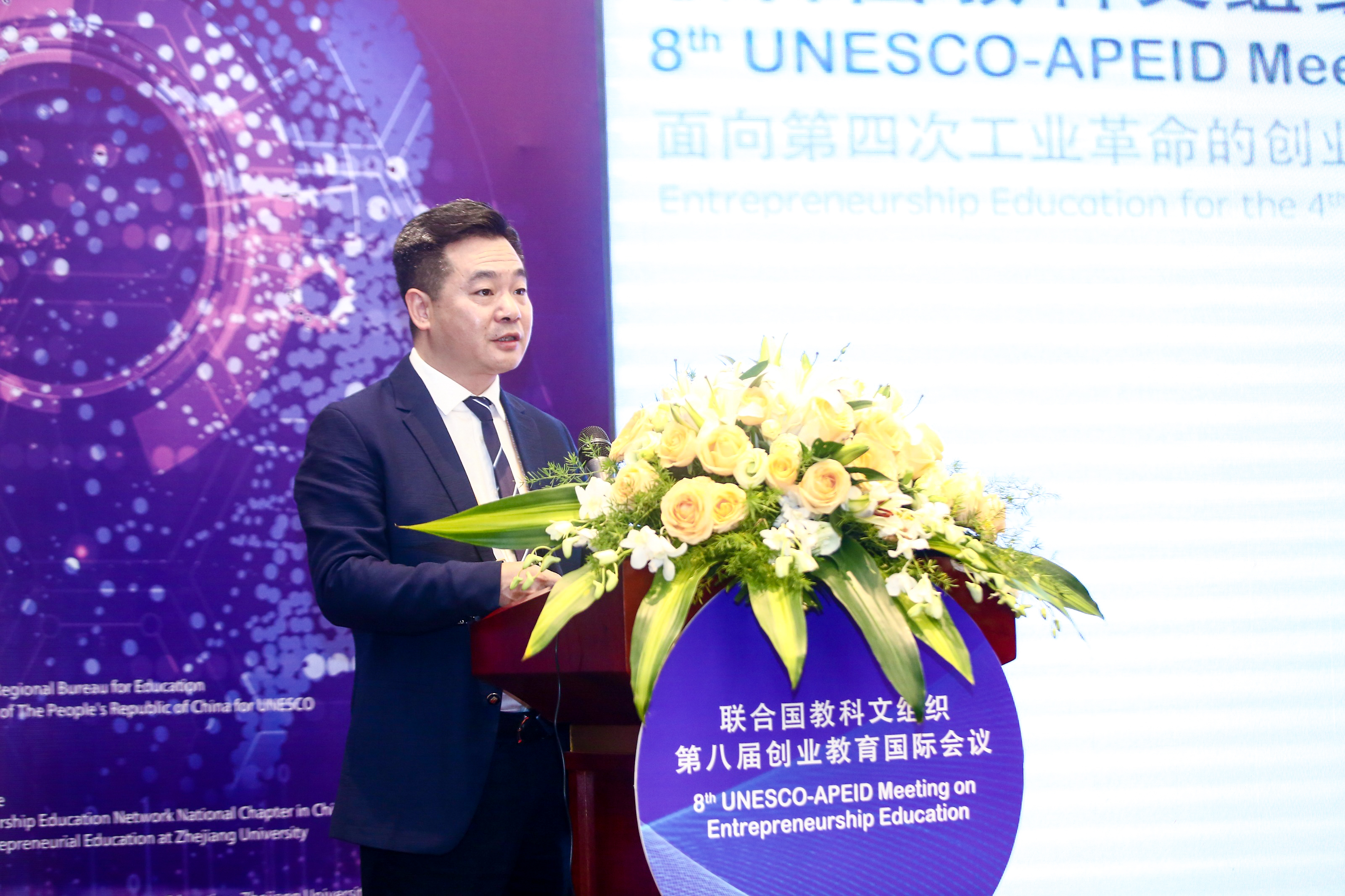 由联合国教科文组织亚太地区教育局、中国联合国教科文组织全委会、朱古力av 主办,朱古力av 承办的联合国教科文组织第八届创业教育国际会议于2019年10月9-11日在杭州顺利召开。来自联合国教科文组织(UNESCO)、联合国开发计划署(UNDP)、国际劳工组织(ILO)、东南亚教育部长组织(SEAMEO)等国际机构的代表及来自30多个国家政府部门、教育机构、行业企业和社会组织的代表共计200余人出席了会议。本次会议系第五届中国“互联网+”大学生创新创业大赛的 重要组成部分,主题聚焦“面向第四次工业革命的创业教育”。