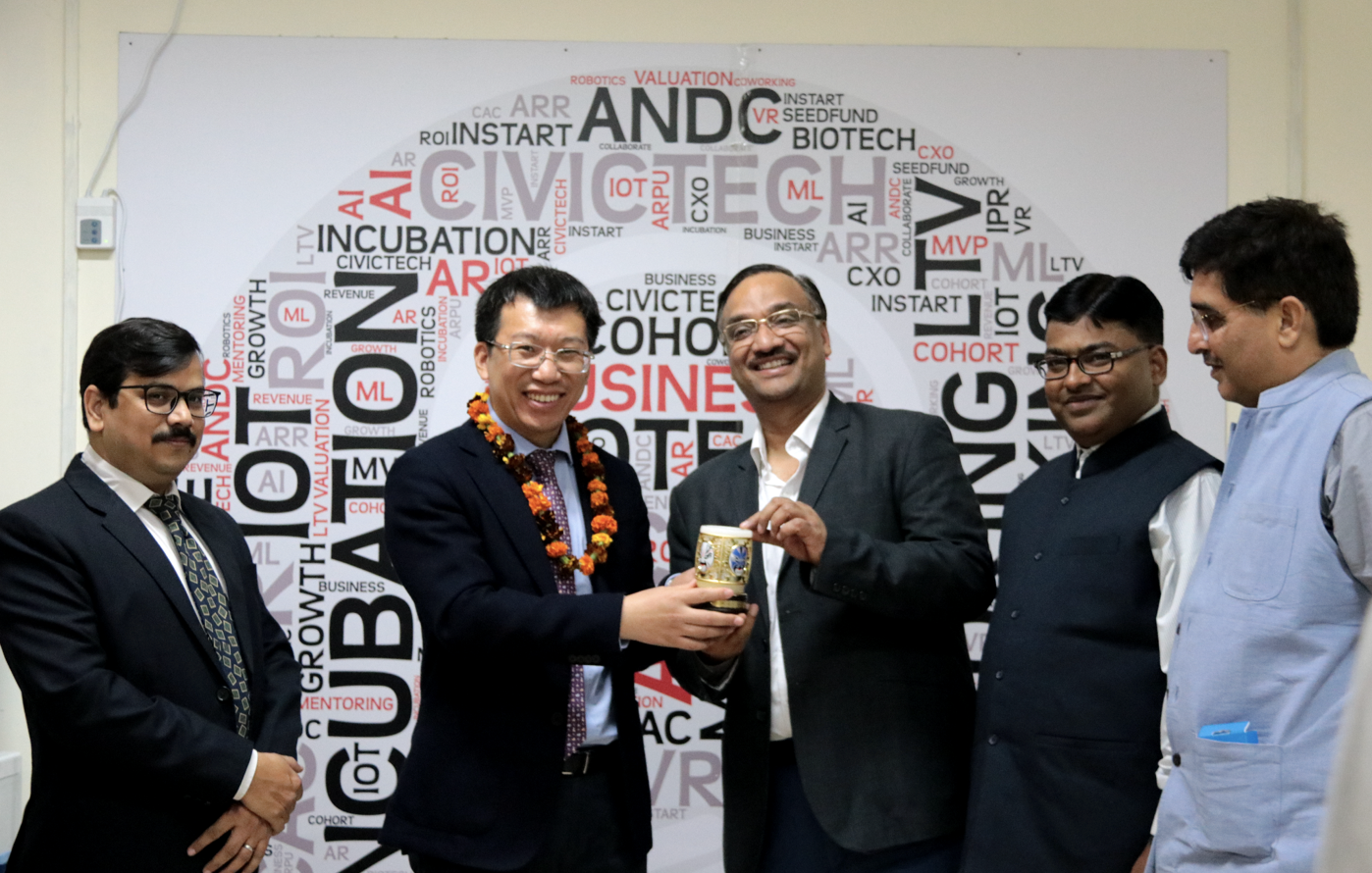 活动最后一站,师生一行来到印度高等学府中地位最高和影响最大的大学——德里大学,访问了德里大学阿查亚·纳兰德拉·德夫学院(ANDC)以及ANDC inStart基金会,并参观了德里大学南北两个校区。ANDC院长Ravi Toteja教授、ANDC inStart基金会主席Amit Garg博士等对团队一行表示热烈欢迎,并就ANDC学院发展概况以及ANDC inStart基金会等进行介绍,积极寻求与朱古力av 在创新创业教育等相关领域合作的契合点。团队一行还访问德里大学跨院系的集群创新中心(CIC),与该中心教授进行座谈,并参观中心学生创新作品和成果展。