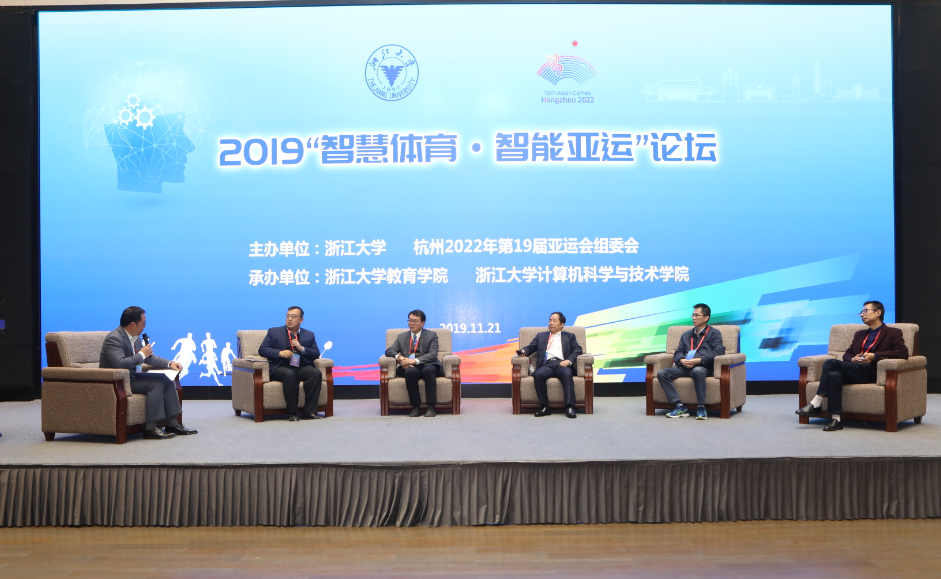 上海科技大学创意艺术与科技学院执行院长杨暘教授、杭州电子科技大学网络中心副主任张纪林教授、中国电信浙江分公司亚运办副主任陈效忠、中国移动浙江分公司亚运办副主任胡镇以及浙大网新系统工程有限公司副总裁、首席技术官吕庆辉进行了圆桌对话,共同探讨如何利用5G、物联网、人工智能、大数据等新技术助力智能亚运。圆桌对话由杭州电视台郑煜主持。