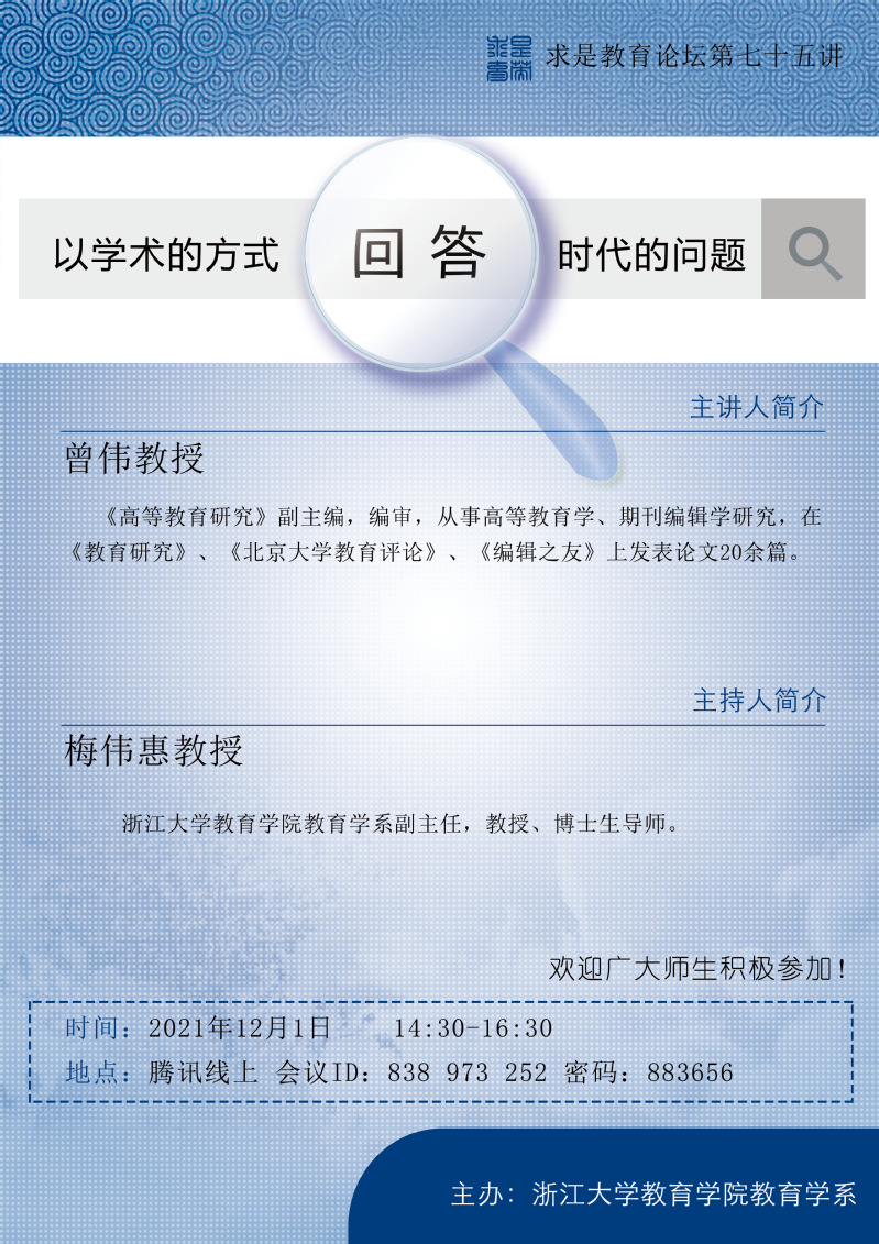 学术预报丨求是教育论坛第七十五讲