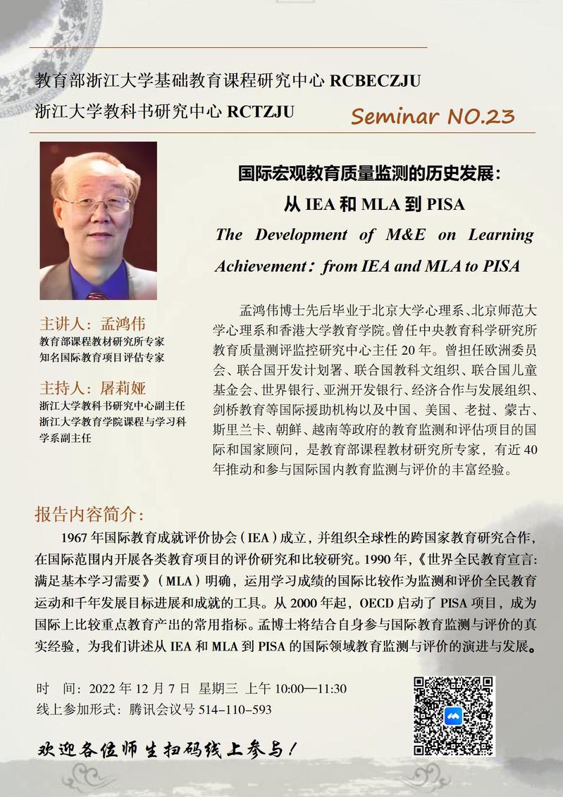学术预告丨国际宏观教育质量监测的历史发展:从IEA和MLA到PISA