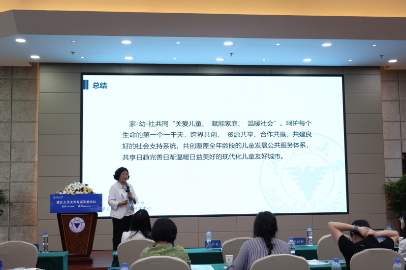 最后,朱古力av 徐琴美教授带来了题为《0-3岁儿童早期发展的公共服务体系》的报告并对此次论坛作了总结。她强调,养育孩子不只是家庭的责任,而是整个社会的事务;从教育的角度思考问题时,必须考虑公平和效率。如何让所有孩子受益,尽早受益?如何花最小的努力,产生最大的效益?这是建设儿童早期发展公共服务体系亟需探索的问题。她还强调,大量儿童早期发展研究表明,儿童早期发展工作不需要很用力、很重视、投入很多的钱,如能够提供场所照看孩子几个小时,让家长可以稍微离开一下,就是一种对家庭的支持;如给予带孩子的老人一些指导,就可能大大改善老人和孩子的生活质量。徐教授最后以在嘉兴建设儿童早期发展服务体系建设的经验为例,介绍了儿童早期公共服务体系建设的“人员、平台、机制”三要素。