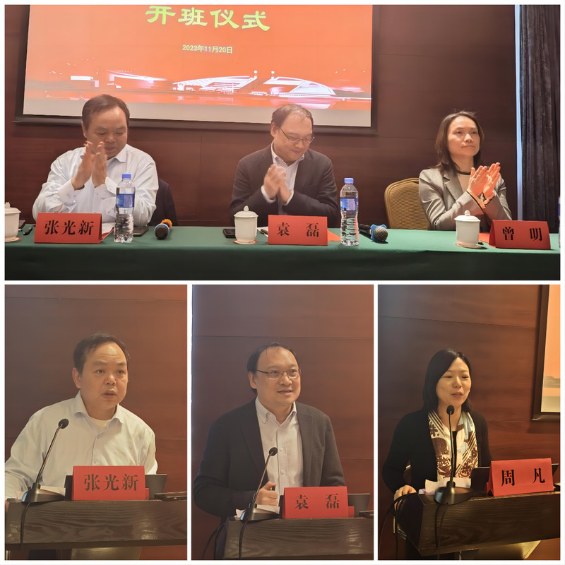 开班仪式上,张光新院长致欢迎词,他强调了一流本科建设的重要性,希望两校在教务工作方面开展深入的交流合作,并预祝培训取得圆满成功。袁磊主任作开班动员讲话,他简要介绍了本次培训的课程安排,希望学员们能严格遵守培训纪律;深入学习、思考、研究,并学以致用;把深圳大学毛军发校长提出的“真解决问题”“解决真问题”“问题真解决”的理念贯彻到此次培训和今后的人才培养当中,为推动学校发展做出积极贡献。