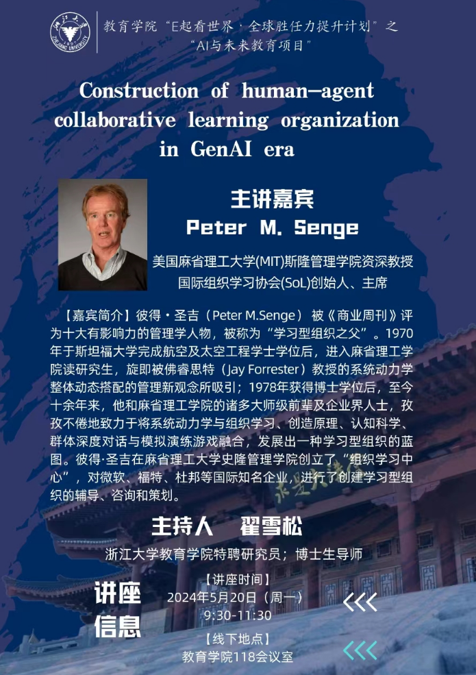 “E起看世界·全球胜任力提升计划”之“AI与未来教育项目”讲座:Construction of human-agent collaborative learning organizationin GenAl era