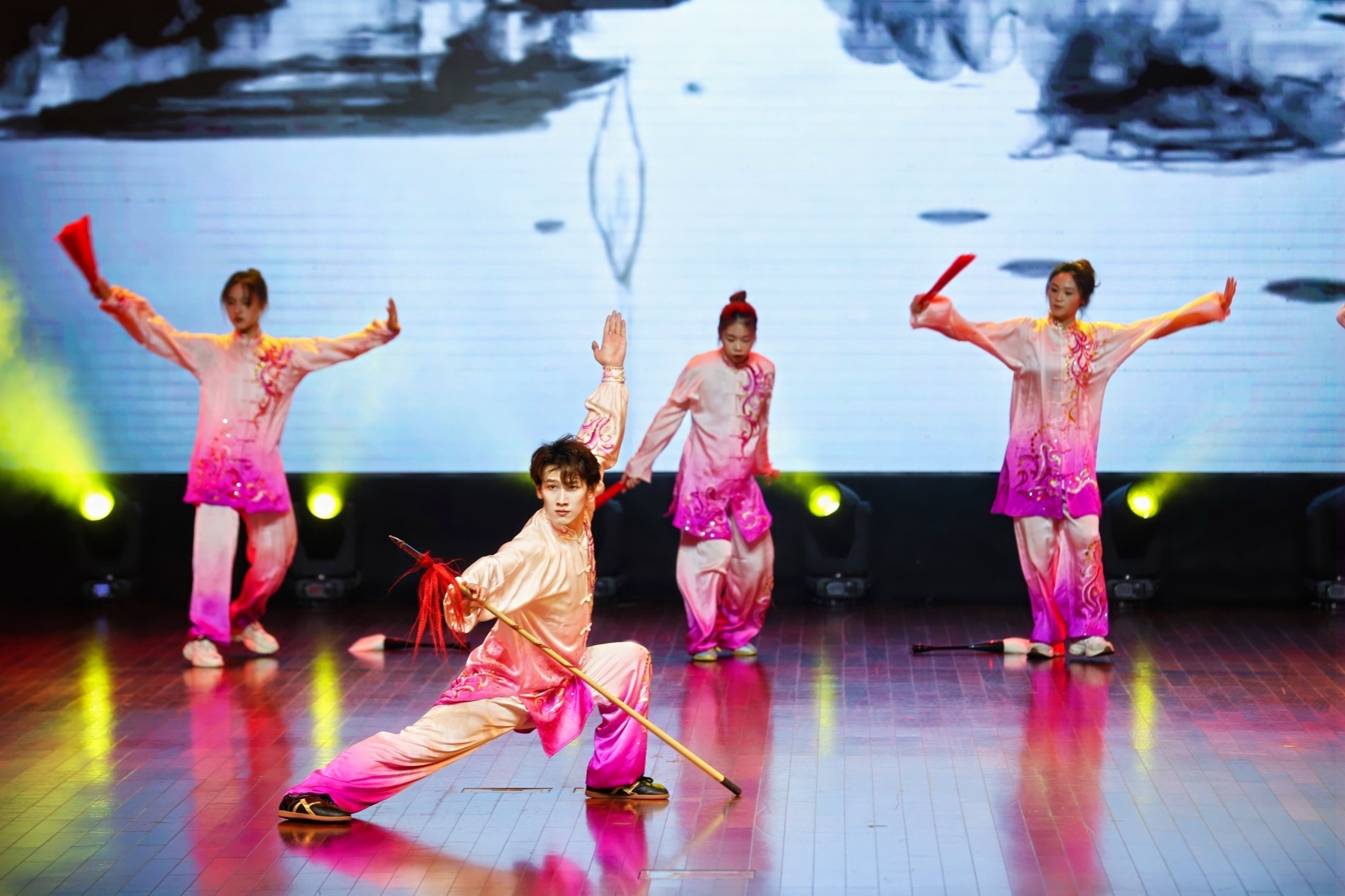 张兹雅、任祝颖、潘书杭等同学的《太极笔韵》表演,如同行云流水,刚柔并济,将中国武术的精髓淋漓展现,令人叹为观止。