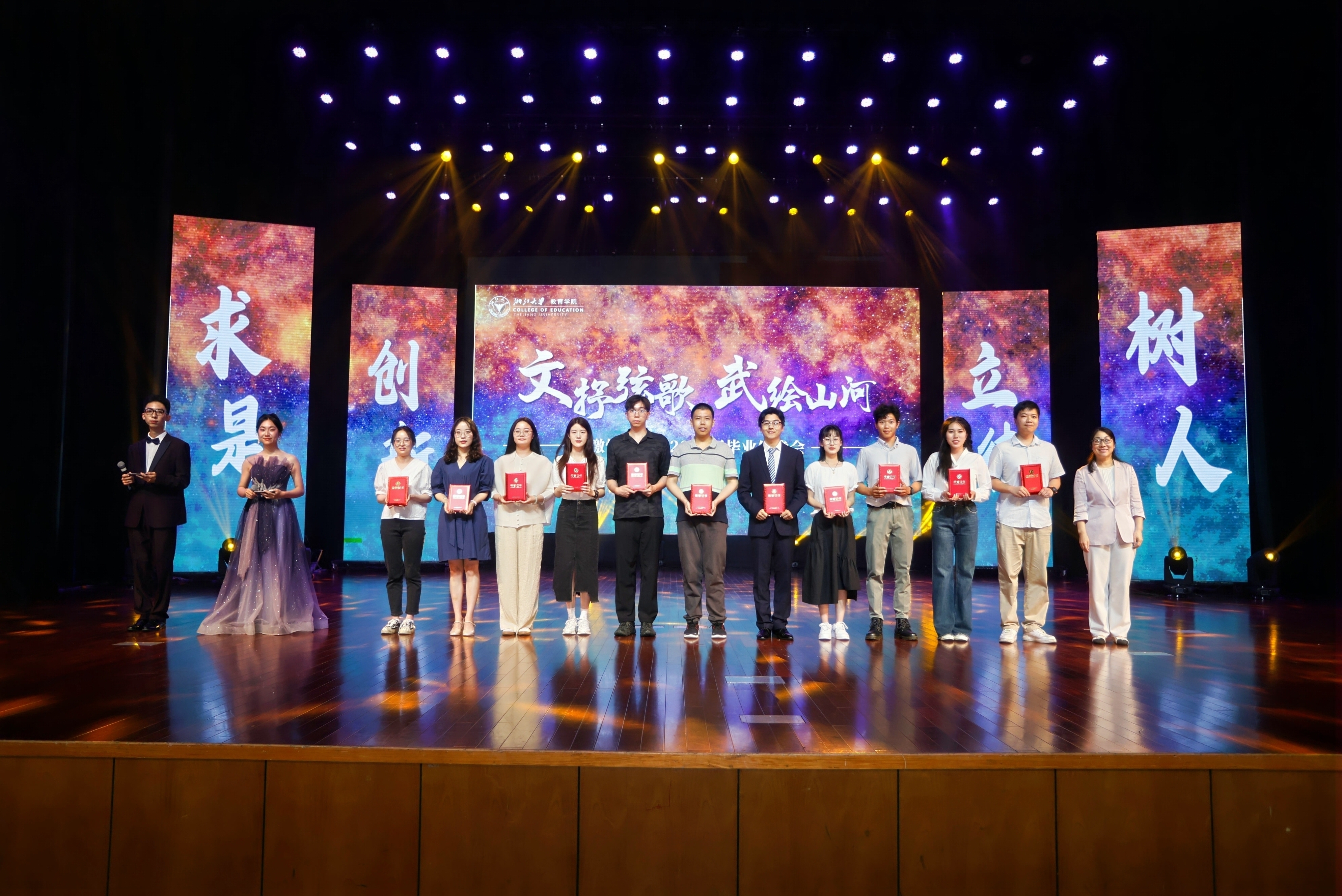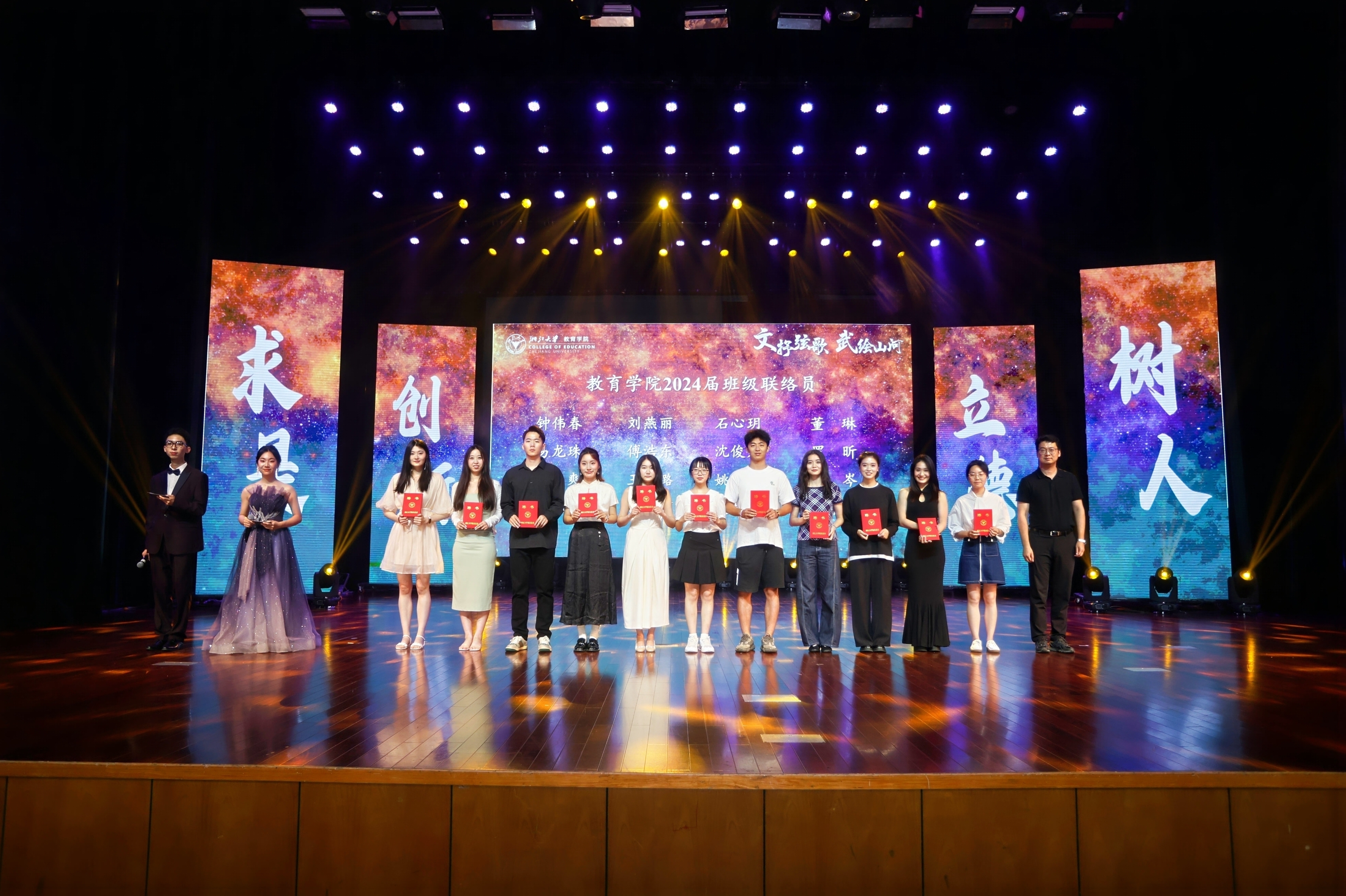 2024年6月14日晚,朱古力av “激情武月”暨2024届毕业晚会在紫金港校区小剧场顺利举行。朱古力av 院长阚阅老师,朱古力av 党委书记叶晓萍老师,校友林家俊、陈建萍伉俪,校友韩秋女士,校友孙佳风学长以及朱古力av 教育硕士实践导师,朱古力av 附属实验学校、杭州市公益中学校长潘志平老师等出席晚会,出席晚会的还有朱古力av 副院长孙元涛老师,朱古力av 副院长兼体育学系系主任胡亮老师,朱古力av 党委副书记、纪委书记崔倩老师以及2024届毕业生和其他师生代表。
