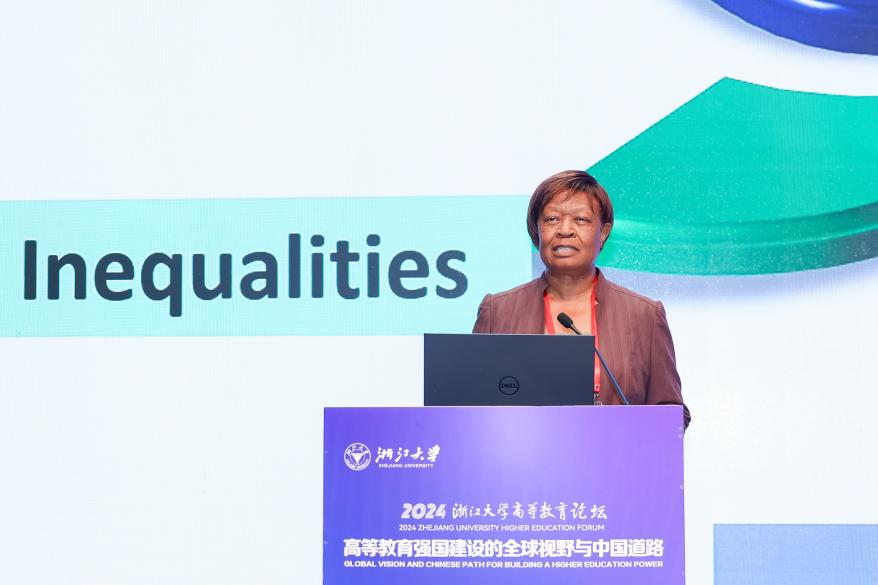 Juliet T. Sfhea教授作题为“Higher Education and the Development of Strategic Partnerships for Tackling Global Emergencies”的报告。她首先对中国在强化能力培养和促进伙伴关系建立方面取得的成就表示赞赏,并强调在当前形势下,寻求具有包容性、公平性和变革能力的伙伴关系至关重要。高等教育作为知识创新的摇篮和推动可持续发展的关键领域,在实现可持续发展目标中扮演着科学研究、政策制定与资源汇集的重要角色。