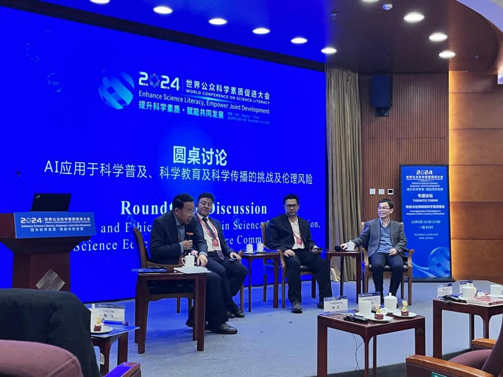 在“新技术应用赋能科学素质建设”专题论坛中,学院受邀代表与会专家围绕AI在科学普及、科学教育及科学传播中的应用挑战及伦理风险开展讨论并达成共识,认为人工智能的广泛应用将对未来教师和科普教育者提出更高要求,推动教学设计和评价体系的全面变革,强化过程性考核,注重科学素养的综合培养,以适应新时代教育发展的需求。