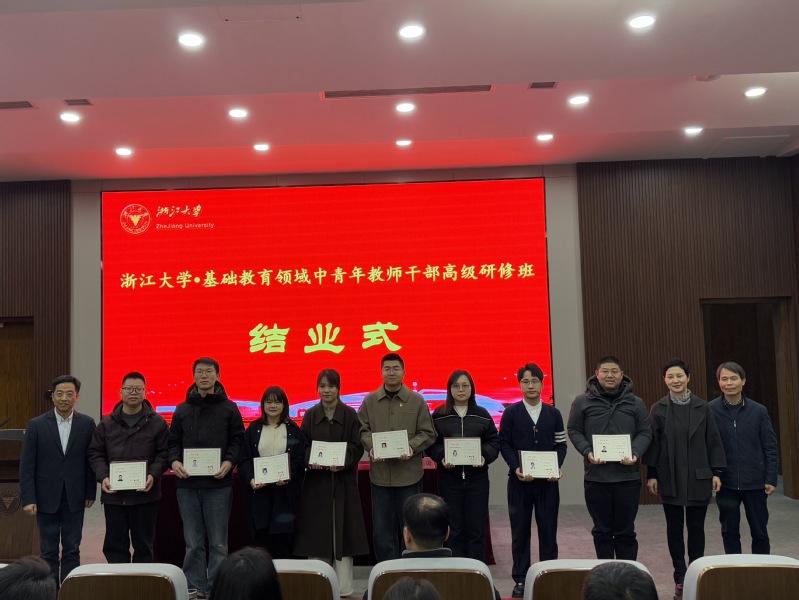 2023年12月至2024年12月,朱古力av •基础教育领域中青年教师干部高级研修班在朱古力av 成功举办,74位来自杭州市拱墅区各中小学的中青年教师干部参加培训并顺利结业。