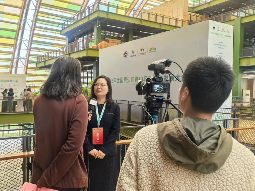 演讲结束后,周丽君教授接受了CCTV5、成都电视台等多家媒体的专访。采访中,周教授围绕“青少年户外运动教育”的重要性及其未来发展方向进行了深入阐述。