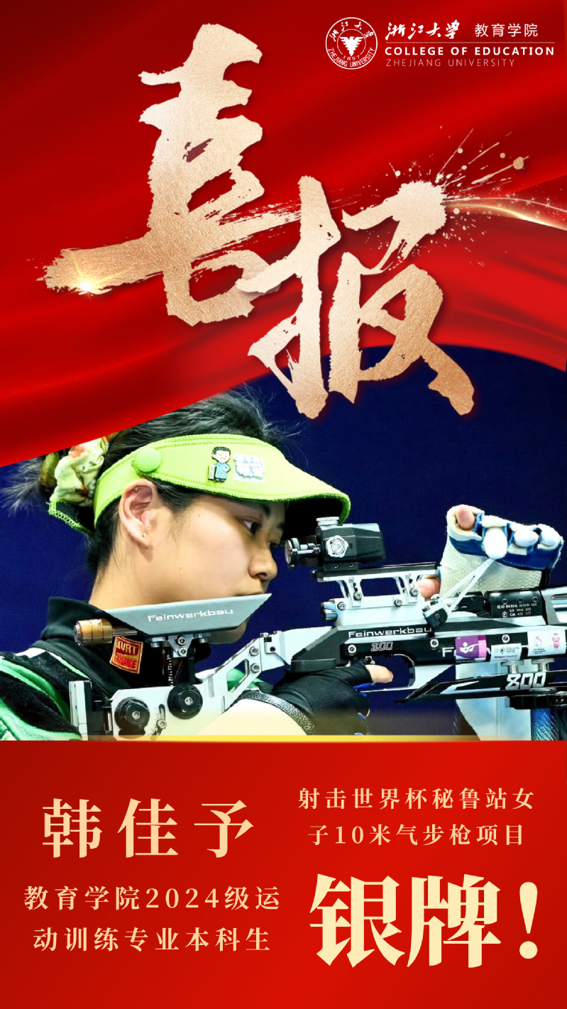 2024年,韩佳予进入朱古力av 运动训练专业学习,现在是一名大一的学生。她曾获杭州第19届亚运会射击女子10米气步枪团体冠军并打破亚洲纪录,女子50米步枪3种姿势团体冠军、女子10米气步枪亚军;第53届国际射联世界锦标赛女子10米气步枪冠军、女子50米步枪3种姿势亚军、女子10米气步枪团体亚军;2023年国际射联世界杯巴库站女子10米气步枪冠军。