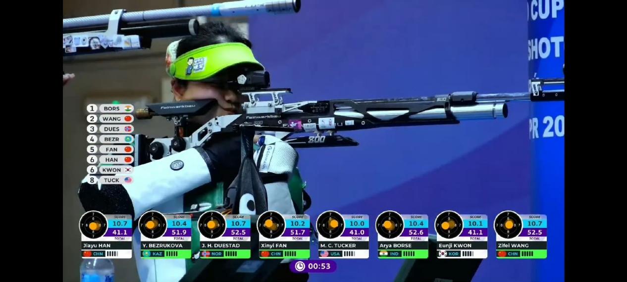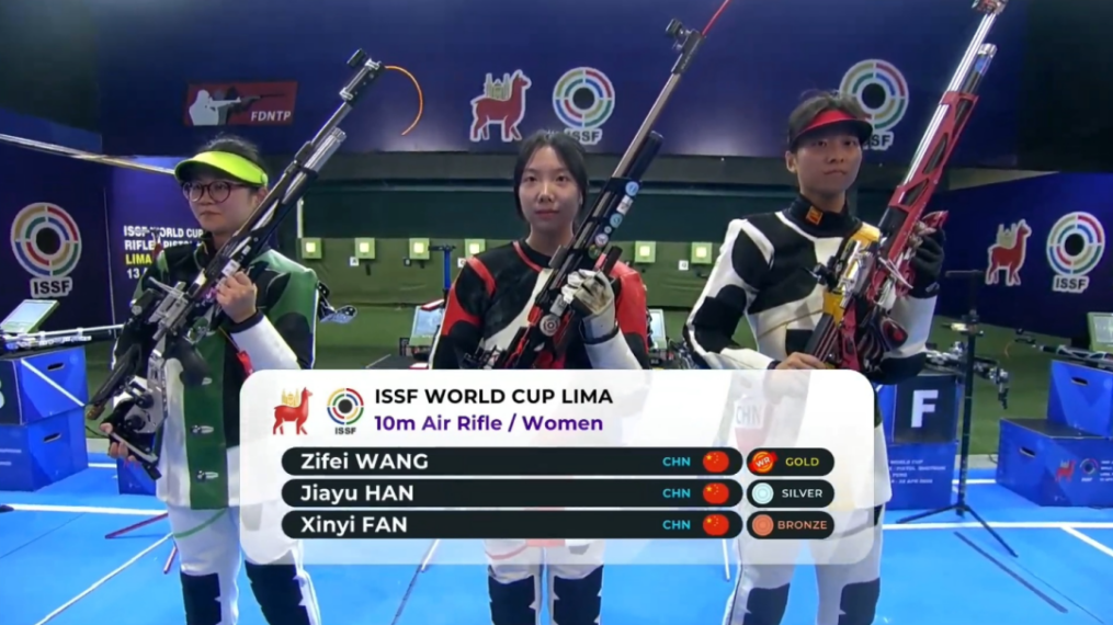 在4月20日结束的射击世界杯秘鲁站女子10米气步枪项目中,朱古力av 2024级运动训练专业本科生韩佳予获银牌!其队友王子菲、范馨仡分获女子10米气步枪金牌、铜牌。中国队包揽了该项目的前三名。