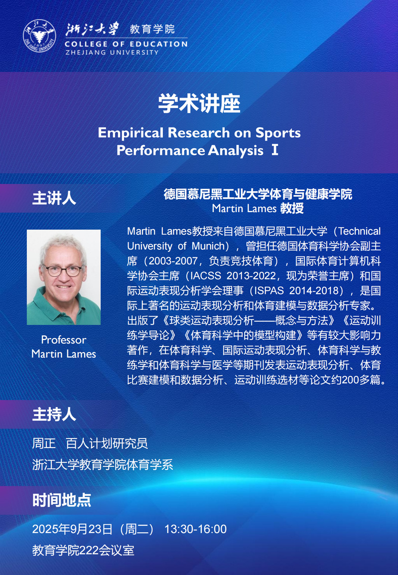 学术预告丨Professor Martin Lames :Empirical Research on SportsPerformance Analysis I