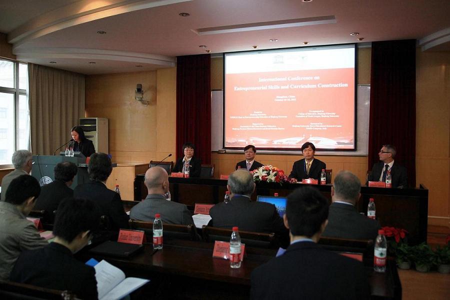 On October 24th, 2011, the international conference on Entrepreneurial Skills and Curriculum Construction was held successfully at the Xixi campus of Zhejiang University. The conference was hosted by Zhejiang University, UNESCO Chair in Entrepreneurship Education at Zhejiang University, co-organized by the College of Education, Zhejiang University, the Committee of Youth League, Zhejiang University, and supported by the Secretariat of All-China Students Federation, the Zhejiang Province Human Resources and Social Security Bureau, the Zhejiang University Seeco Educational Research Center, the Edulife Company, Italy. More than 70 scholars, mentors and entrepreneurs from Italy, USA, Pakistan, and over 20 Chinese universities attended this conference.