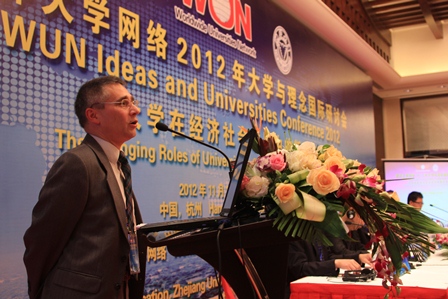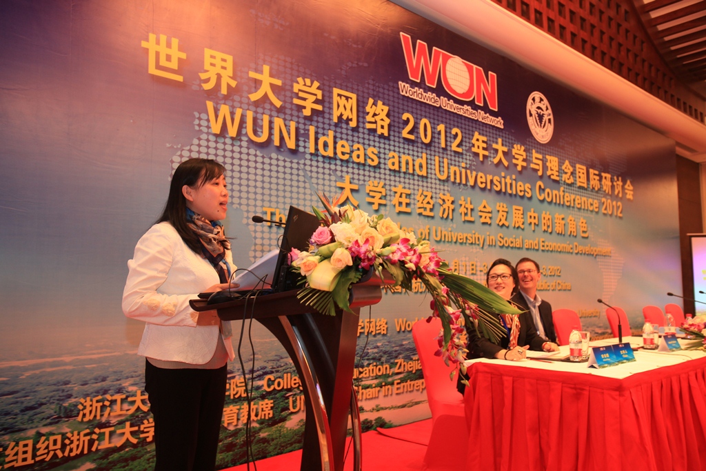 “The Changing Roles of University in Social and Economic Development, WUN Ideas and Universities Conference 2012” was successfully held on Nov. 2-3, 2012 in Hangzhou. The conference was sponsored by WUN and Zhejiang University, and co-organized by the College of Zhejiang University, Local Cooperation Office of Zhejiang University, UNESCO Chair in Entrepreneurship Education at Zhejiang University and the Hangzhou Learning Promoting Society. About 150 participants from the UK, the USA, Canada, Korea, Israel, South Africa and China participated in the conference.