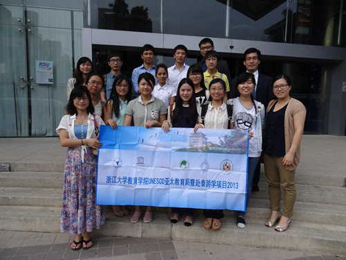 The College of Education’s program ‘Study Tour in Bangkok’, composed of a group of 5 undergraduate students and 5 graduate students, was successfully completed under the leadership of Dr. Mei Weihui and Dr. He Shanyun from 1 October to 6 October, 2013. Apart from visiting UNESCO Bangkok Office, the group also visited Chulalongkorn University, Rangsit University, Assumption University and AIT.