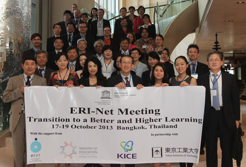 From October 17 to 19 in 2013, the UNESCO Bangkok Office held the UNESCO Education Research Institute Net (ERI-Net) Annual Meeting in Bangkok. The meeting, “Transition to a Better and Higher Learning” was supported by the Ministry of Education, Culture, Sports, Science and Technology, Japan (MEXT), and the Ministry of Education, Korea, and was held in partnership with the Korean Institute of Curriculum and Evaluation (KICE) and the Tokyo Institute of Technology. Officials, scholars, and experts from Australia, China, India, Japan, Korea, Malaysia, Thailand, the Philippines, and SAMEO RIHED in the Asia-Pacific Region participated in the meeting.