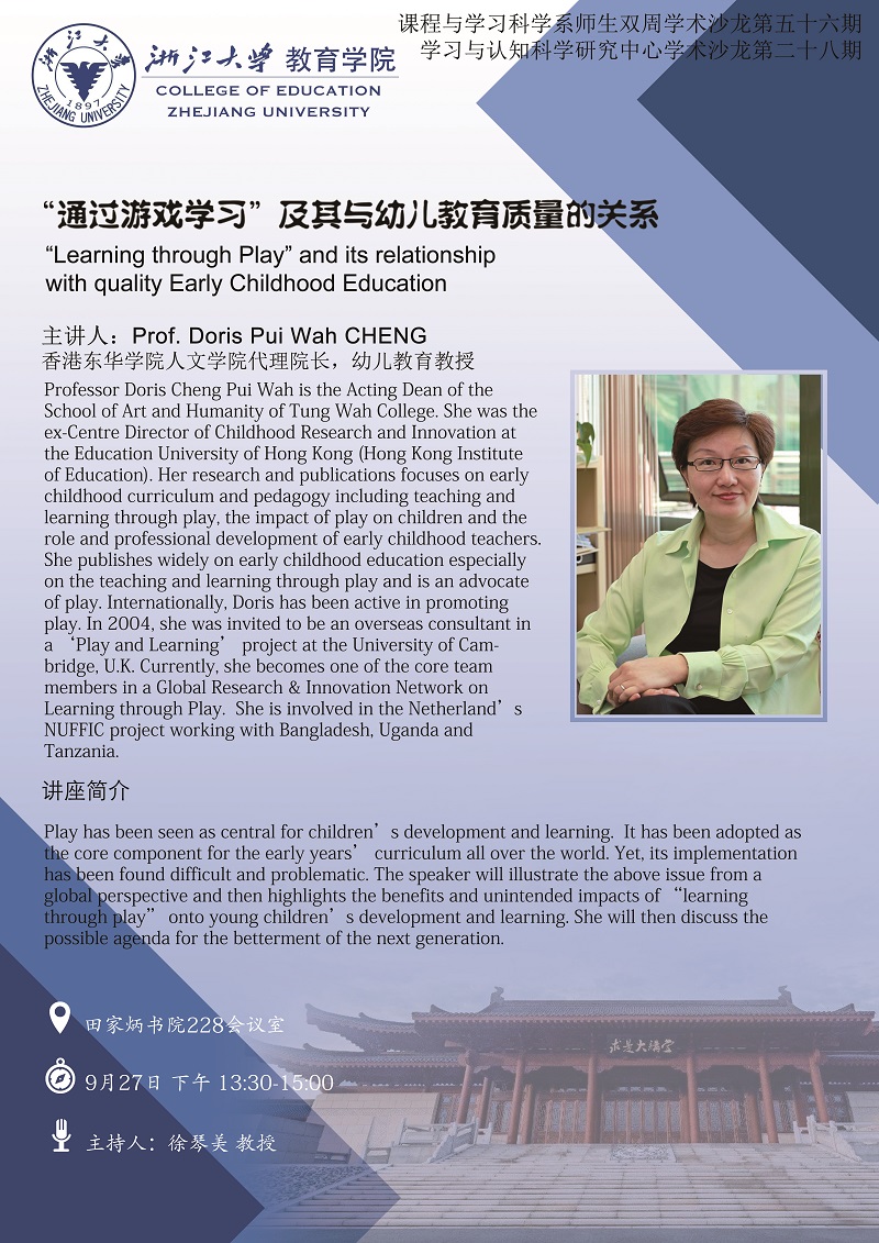 Play has been seen as central for children’s development and learning. It has been adopted as the core component for the early years’ curriculum all over the world. Yet, its implementation has been found difficult and problematic. The speaker will illustrate the above issue from a global perspective and then highlights the benefits and unintended impacts of “learning through play” onto young children’s development and learning. She will then discuss the possible agenda for the betterment of the next generation.