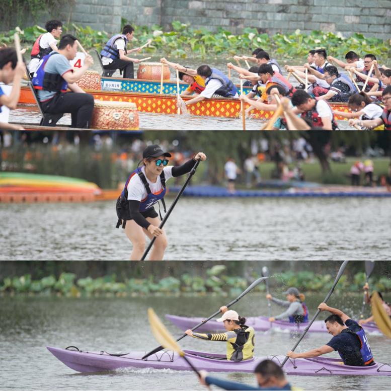 The competition covered a wide range of water sports: dragon boat race, kayaking, paddle boarding, relay race and also a boat DIY contest. Boats sailing on the Qizhen Lake, was also implying another historical boat: the Red Boat, which honors the conclusion of the first National Congress of the Communist Party of China in 1921. The courageous and pioneering spirit of Red Boat was afloat in the splashed water and the beating drums.