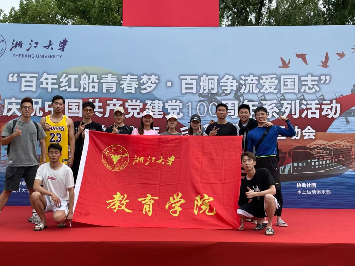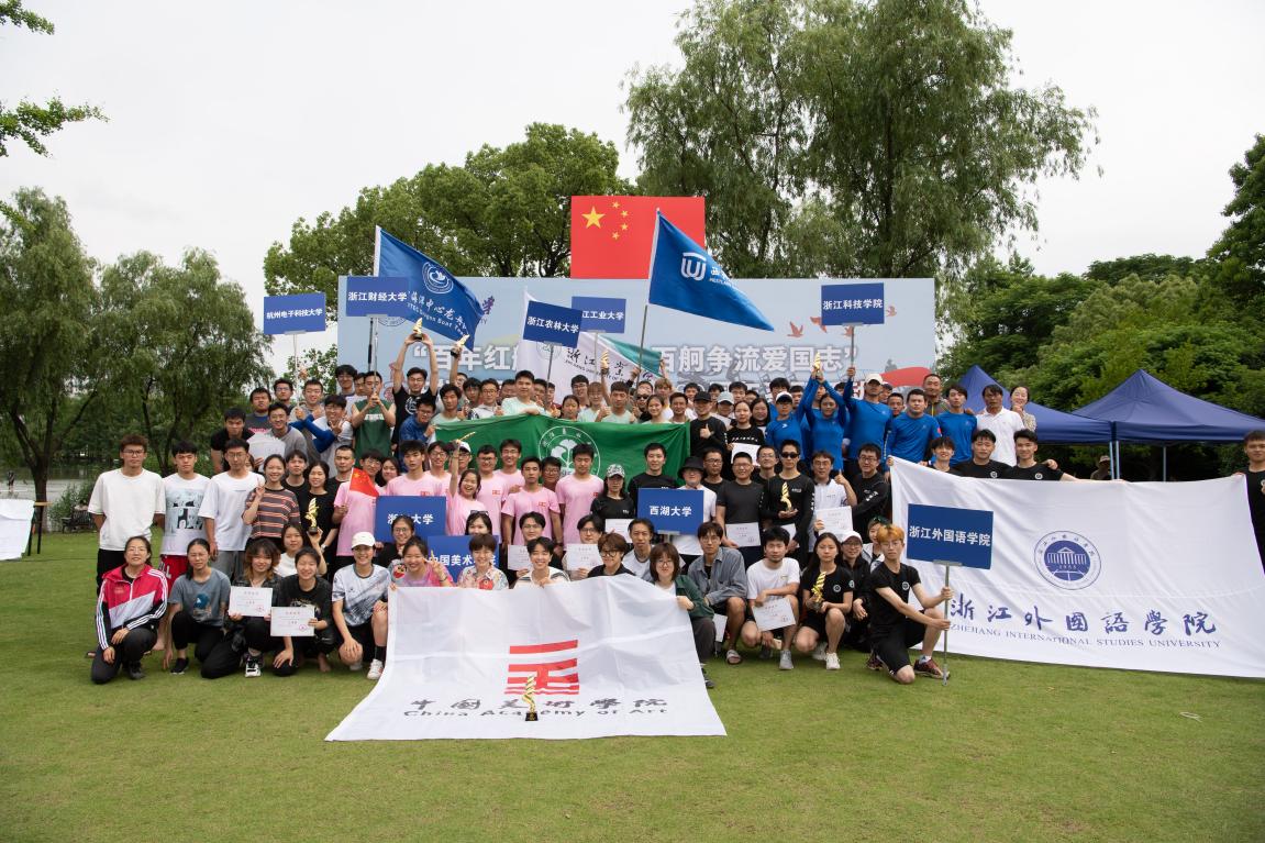 It was bright and breezy on the Qizhen Lake of Zhejiang University(ZJU), Zijingang Campus on Saturday, May 22.Marking the 100th anniversary of the CPC's founding and the 124th anniversary of the university’s establishment,the 2021 ZJU annual water sports competition and the Ninth Dragon Boat Race of Colleges and Universities in Hangzhou were held. Nine dragon boat teams from Zhejiang University, Westlake University, China Academy of Art and other universities and colleges in Hangzhou got togetherfor this high-spirited and well-mannered contest.
