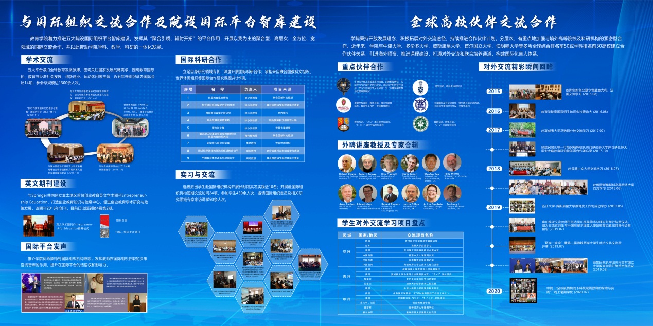 In this May of 2021, the College of Education launched the first Global Exchange and Cooperation Season, aiming to continue to expand openness, strengthen partnership and cooperation, promote academic exchanges, and strengthen international talent training. With the theme of Openness, Connectivity, Exchange and Sharing, the first Global Exchange and Cooperation Season includes a series of online and offline activities such as themed lectures, global exchange and cooperation exhibition, student ambassador program, Dean's Meeting, and so on.