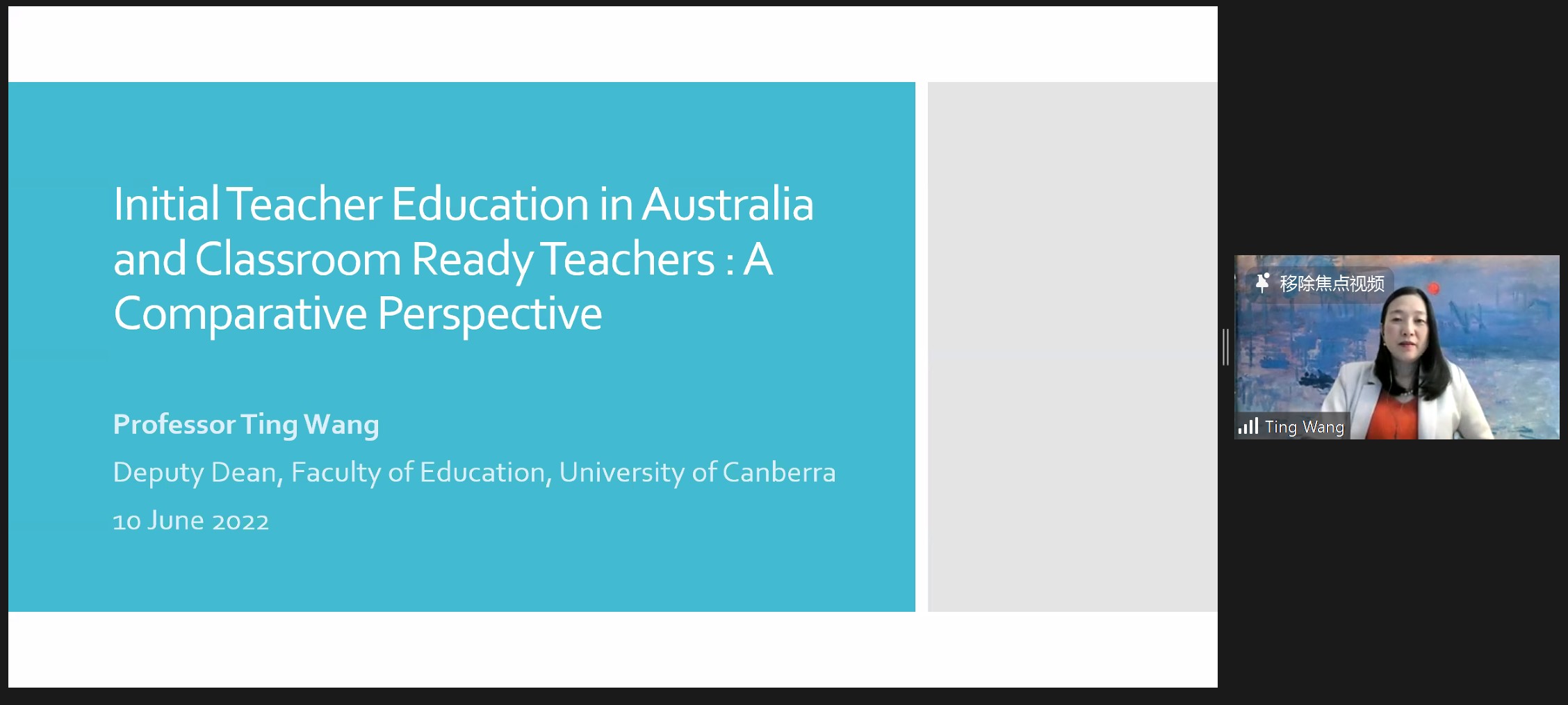 On June 10, Professor Wang Ting from the University of Canberra, Australia, focused on “Initial teacher education in Australia and classroom ready teachers: A comparative perspective”. To get to know students better, Professor Wang asked the students to introduce themselves previous to the presentation. Professor Wang put her emphasis falling on teacher education. In specific, Professor Wang explained the pre-service education certification for classroom ready teachers, the AITSL vocational assessment agency in Australia, the employment standards of Australian vocational teachers, the key reforms of TEMAG and the teachers and teaching of the University of California. Finally, Professor Wang summarized the characteristics and problems in the current education field , and shared her main idea that teachers are the key to our future. When students asking about whether such a standardized teacher qualification system can be borrowed, Professor Wang said that the standards for recruiting teachers in each school and each region are different. China is learning from the educational mechanisms in Australia and other countries, but we must always keep in mind that each mechanism has its own advantages and disadvantages.