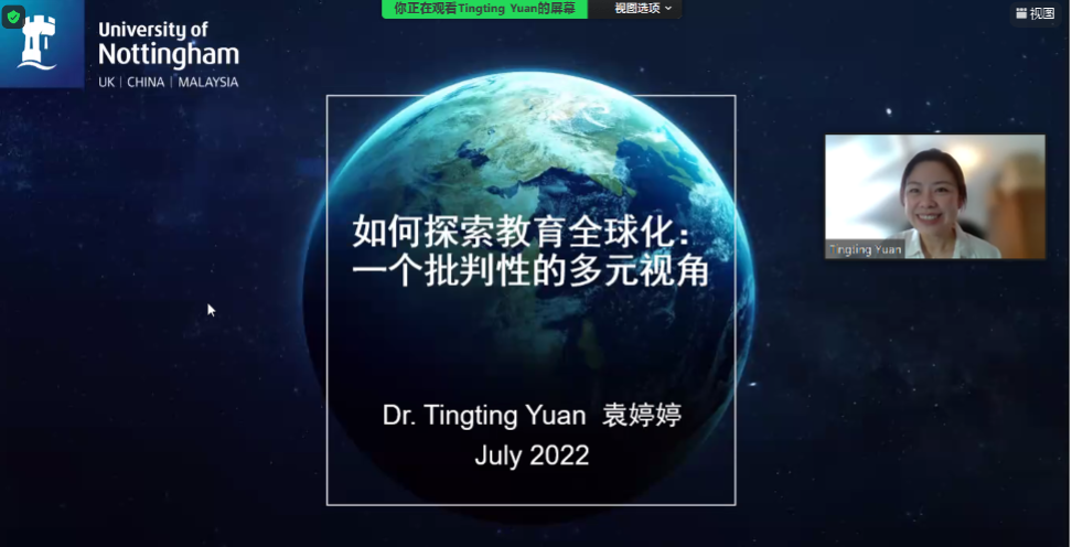 The nineth Session was wonderfully presented by Tingting Yuan, associate professor at University of Nottingham, entitled "Towards a critical cultural political economy account of the globalized higher education". From the current international context, Prof. Yuan mentioned that ongoing neoliberal globalization is still driving marketisation of education and COVID-19 pandemic significantly decreased international student mobility, countries and regions in East Asia became popular study destinations. The fact attracted much attention on global partnership, professional training and education, and so on, which simultaneously encouraged us to reflect on the existing norms, forms and politics of knowledge transfer in HE.