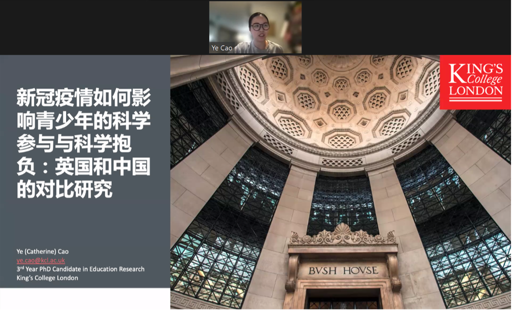 The eleventh session’s lecturer was Dr. Ye Cao, a doctoral student from King's College London, who focused on whether COVID-19 epidemic impressed students' engagement with science. Ye Cao compared the participation of Chinese and British students in science before and after the epidemic, found that although Chinese students obtained the world's leading position in mathematics and science of PISA before outbreak, their engagement intention on STEM or STEM-related fields were far lower than the world average. After outbreak, Chinese and British students had different experiences which led to different tendencies. For instance, inspired by the medical and healthcare workers, especially female ones, the willingness of students especially female students who tended to engage in medical science had been greatly enhanced. For British students, their purpose to throw into science was mainly to acquire knowledge to solve current epidemic problems. Interestingly, the epidemic had increased students' enthusiasm for scientific participation to a certain extent with respective intentions.