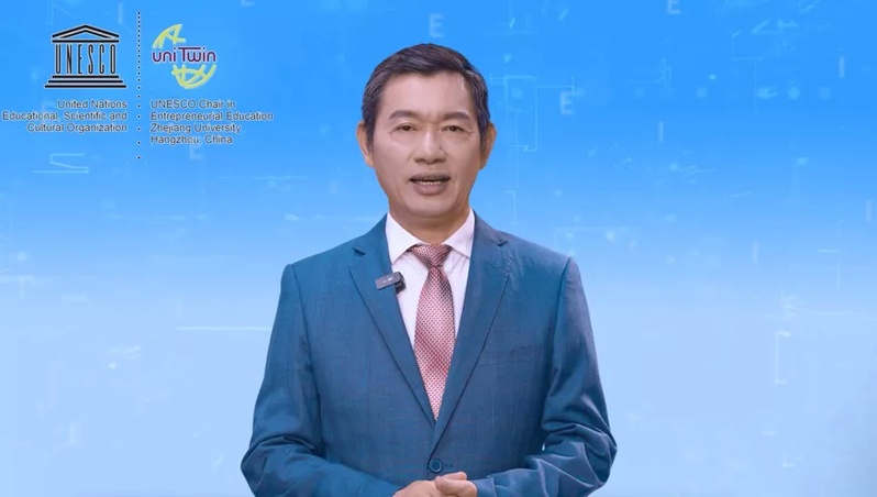 Professor Xiaozhou Xu, Chairholder of the UNESCO Chair in Entrepreneurship Education at Zhejiang University, delivered a video speech. Professor Xu pointed out that since the establishment of the Chair 12 years ago, a global cooperation network has been successfully established among international organizations, governments, industries and universities. This global network promotes the formation of a knowledge base of entrepreneurship education, generating and sharing new knowledge and ideas in entrepreneurship education. it serves as a capacity building station for entrepreneurship education, and provides learning and training projects with global partners through teaching materials, MOOC, entrepreneurship competitions and summer camps. It is a think tank for the development, reform and innovation of entrepreneurship education policies at the university, local, national and international levels. Moreover, it becomes a platform for international cooperation through the joint organization of international conferences, research projects and the dissemination of best practices. With the guidance and support of UNESCO, this Chairis working to promote the development of a global innovation and entrepreneurship society, providing high-quality, inclusive and lifelong entrepreneurship education for all.