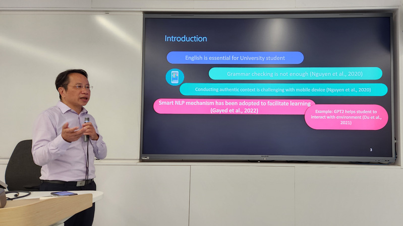 On October 13, 2023, Professor Hwang Wu-Yuin from Taiwan Central University delivered an engaging face-to-face lecture titled “Natural Language Processing in Education.” In this session, Prof. Hwang expertly unraveled the complexities of Natural Language Processing (NLP), elucidating its pivotal role in the realm of educational technology. He provided an in-depth exploration of NLP’s practical applications in fostering interactive and personalized learning environments. Furthermore, he candidly discussed the field’s current challenges and limitations, adding depth to the discourse. A highlight of his talk was the insightful exposition on his pioneering research projects, which focus on leveraging AI to revolutionize the language learning process. This lecture offered a rich blend of theoretical knowledge and practical insights, making it a valuable contribution to the understanding and advancement of NLP in education.