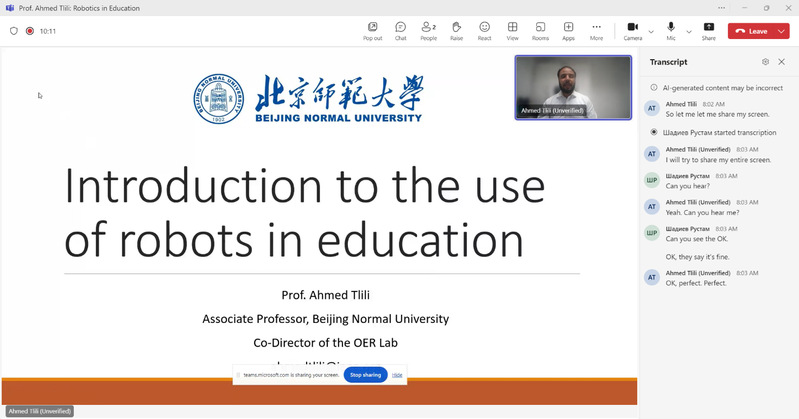 On September 27, 2024, Professor Ahmed Tlili from the Smart Learning Institute of Beijing Normal University, China, conducted a lecture on “Robotics in Education.” Professor Tlili’s session introduced students to educational robotics, showcasing advancements and applications of robotics technology in different cultural contexts and discussing the diverse impacts of robots on education worldwide.