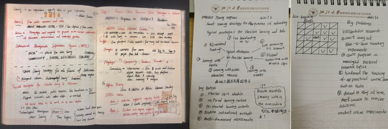 通过本次暑期学校的在线课程学习,同学们都获得了满满的知识干货,与此同时,他们各自采用不同的形式记录下了自身的学习过程与思考,例如思维导图、纸质笔记、概念图以及相关图文资料等等。