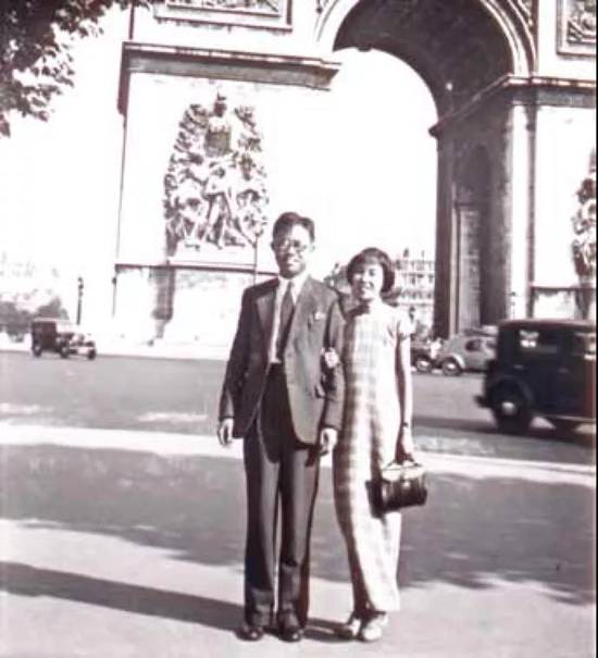 王承绪先生和夫人赵端瑛于法国巴黎凯旋门