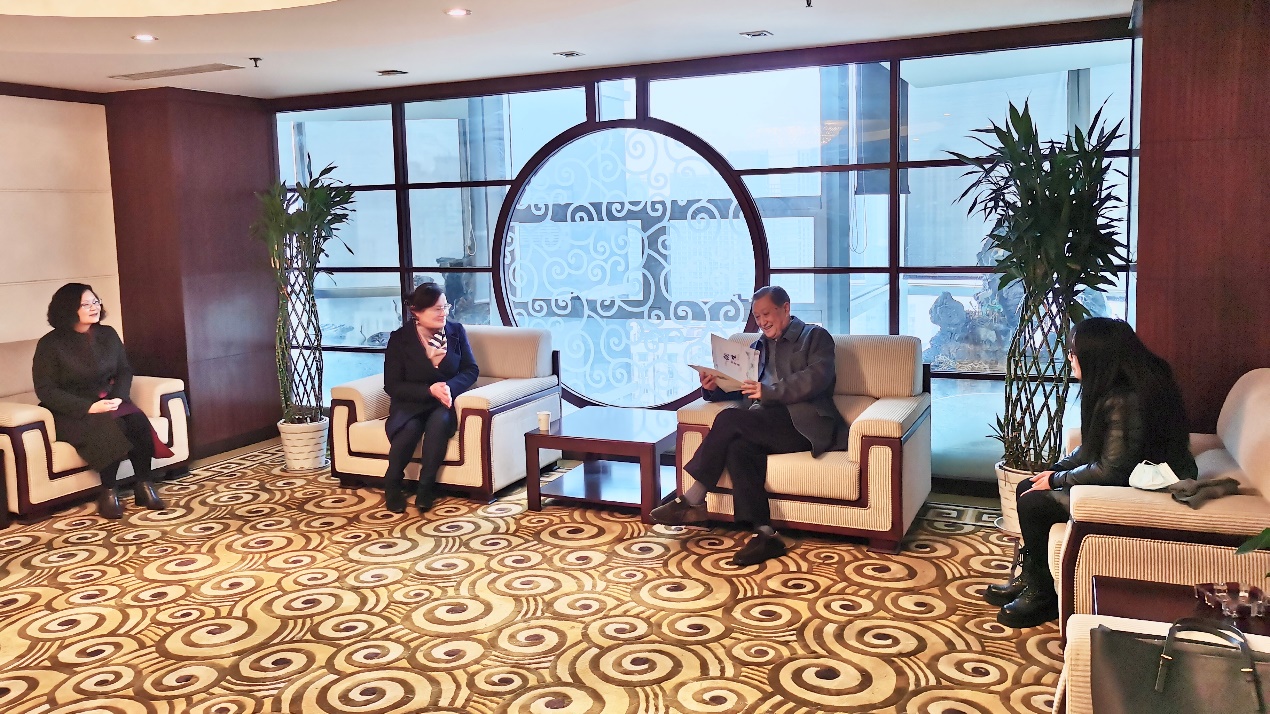 春节将至,1月25日下午,学院副院长周丽君教授、体育学系于可红教授、院部机关姚加丽老师等一行,专程来到杭州欣盛房地产开发有限公司走访看望体育学系1958届校友叶朝生先生。